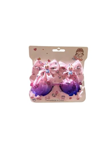 Generic - نظارات اطفال شمسية نظارة شمس للبنات تأتي مع 2 توكة شعر على شكل فيونكة بينك