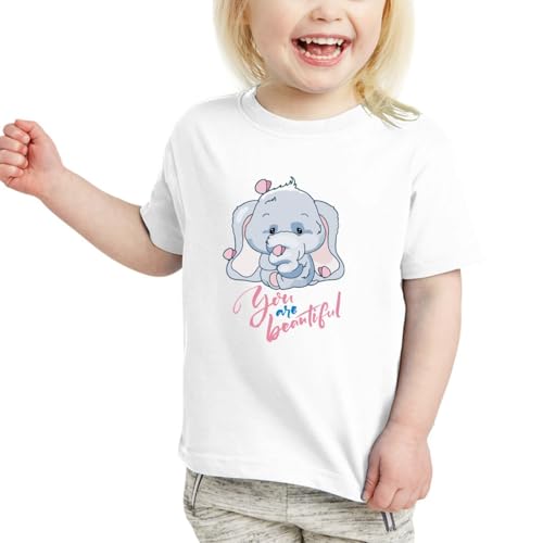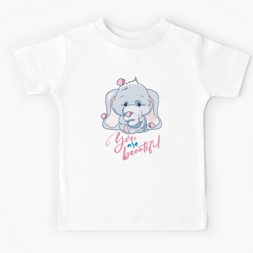 Generic - تيشرت للاطفال - تي شيرت باكمام قصيرة للبنات - ابيض - طباعة على جانب واحد - تصميم فيل - أنت جميل- نحن نطبع هديتك