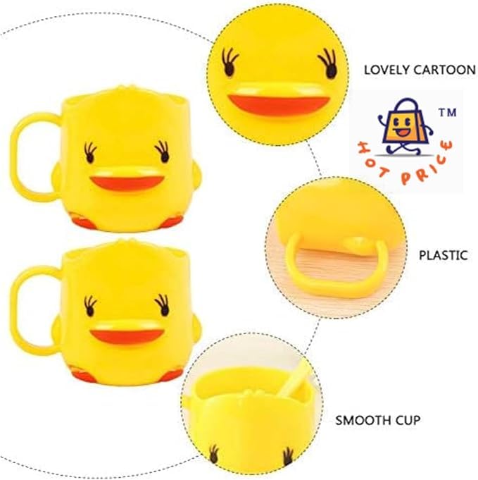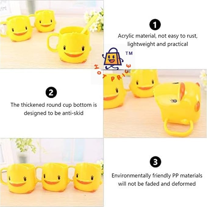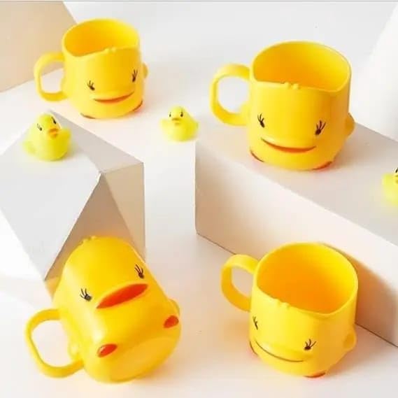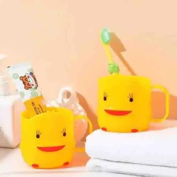 Generic - ، كوب فرشاة أسنان للأطفال، تصميم بطة صفراء مبتسمة، بلاستيك، مقبض مريح