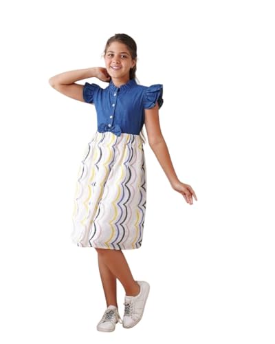 Generic - فستان خروج بناتي صيفي للعيد جينز بلوبين - تصميم أنيق ومريح للبنات مقسات من 11ل13 سنوات من Kids Town