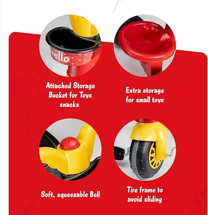 Generic - دراجة ثلاثية العجلات للاطفال مع دلو تخزين وجرس وإطارات مضادة للانزلاق، أحمر، للأعمار من 2 إلى 6 سنوات