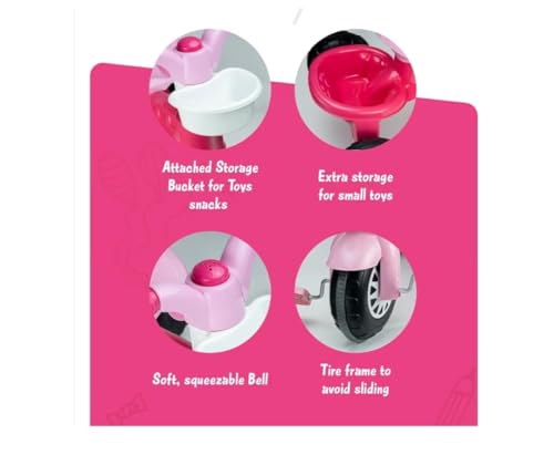 Generic - دراجة ثلاثية العجلات للأطفال - دراجة متينة بثلاث عجلات مزودة بصندوق تخزين وجرس وإطارات مانعة للانزلاق - مناسبة للأعمار من 2 إلى 6 سنوات - لون وردي