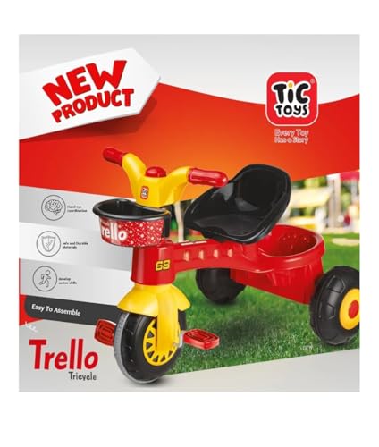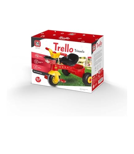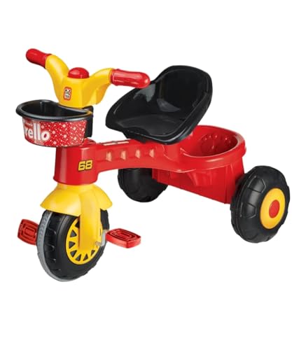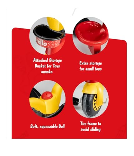 Generic - دراجة ثلاثية العجلات للأطفال متينة بـ3 عجلات مع جردل تخزين وجرس وإطارات مانعة للانزلاق – للأعمار من 2 إلى 6 سنوات (أحمر)
