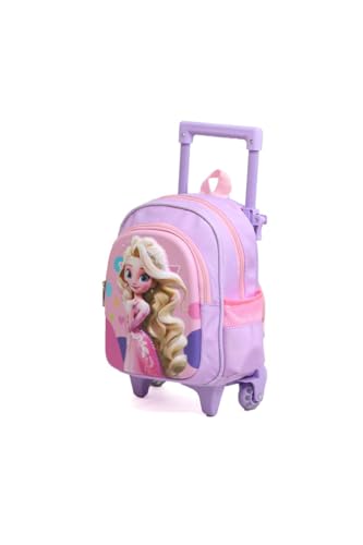 Generic - حقيبة سفر مدرسية، باللون البنفسجي والوردي، مصنوعة من البوليستر، مزودة بمقبض قابل للسحب وعجلات وسحاب مزدوج