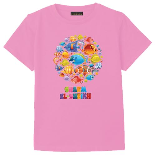 Generic - تي شيرت للاطفال برسومات سمكة استوائية، قطن، كم قصير، بينك، طباعة شرم الشيخ، رقبة دائرية، ملابس كاجوال صيفية مقاس من 3 الى 12 سنة