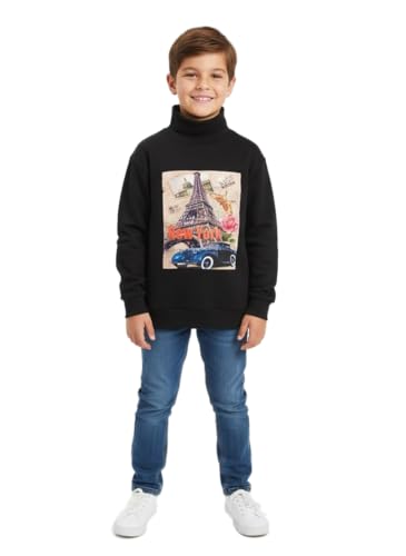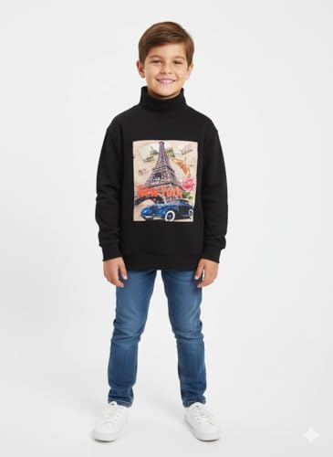 Generic - سويت شيرت برقبة دائرية ضيقة للاطفال بطباعة باريس، مزيج من القطن الاسود، بلوفر شتوي كاجوال بتصميم برج ايفل. مقاس صغير