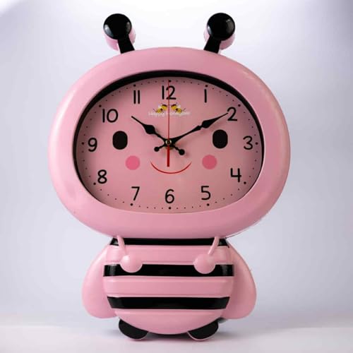 Generic - ساعة حائط للأطفال بتصميم نحله ، وردي، مع وجه مبتسم، مثالية لغرف الأطفال والحضانة، تعمل بالبطارية