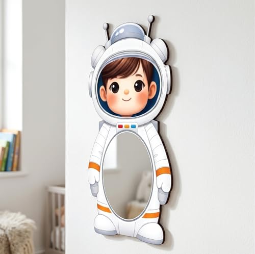 Generic - مرآة حائط للأطفال مصنوعة من خشب عالي الجودة بتصميم رائد فضاء لمسة ديكور عصرية، آمنة تمامًا للصغار وغير قابلة للكسر، خفيفة الوزن وسهلة التركيب لتضفي أناقة على غرفة الطفل
