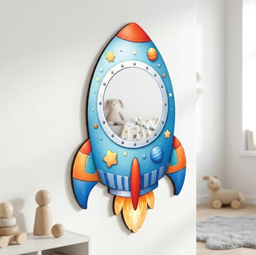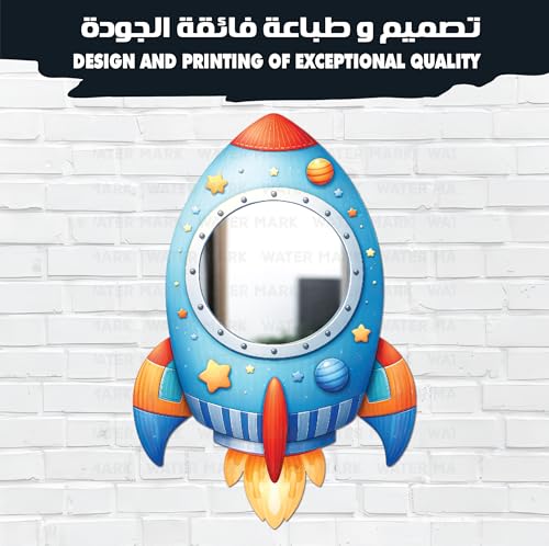 Generic - مرآة حائط للأطفال مصنوعة من خشب عالي الجودة بتصميم صاروخ لطيف كرتوني لمسة ديكور عصرية، آمنة تمامًا للصغار وغير قابلة للكسر، خفيفة الوزن وسهلة التركيب لتضفي أناقة على غرفة الطفل