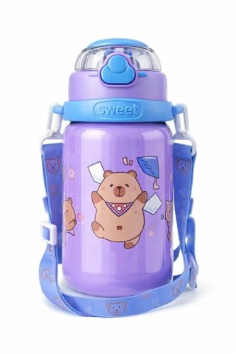 Generic - زجاجة مياه للأطفال سعة 600 مل مع شفاطة وحزام حمل، زجاجة مانعة للتسرب للمدرسة والرياضة والسفر، كوب شرب قابل لإعادة الاستخدام خالي من مادة بيسفينول أ للأولاد والبنات، أرجواني