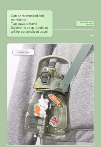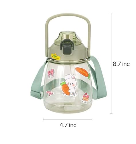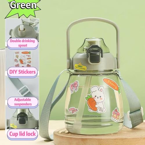 - زجاجة مياه للأطفال مع ماصة، تصميم كرتوني لطيف، فوهة شرب مزدوجة، مقبض محمول، ملصقات ذاتية الصنع (أنماط عشوائية)، كبيرة 38 اونصة، مثالية للمدرسة والرياضات الخارجية (اخضر)