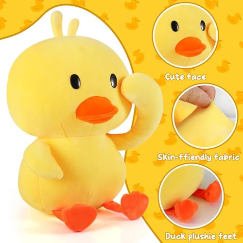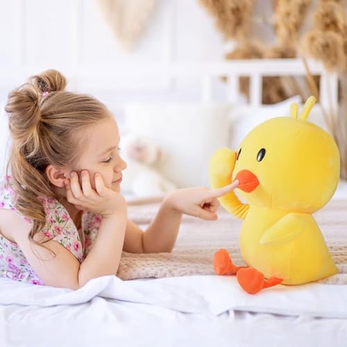 KIDSZONE - ألعاب حيوانات محشوة على شكل بطة بطول 30 سم من كيدززون، دمية بطة صفراء لطيفة، بطة مخملية ناعمة ومرحة، مخدة معانقة ومخدة كنبة هدايا للأطفال في عيد الميلاد وديكور المنزل