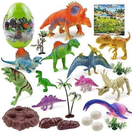 KIDSZONE - كيدززون مجموعة العاب بيض الديناصورات - 20 قطعة من مجسمات الديناصور الواقعية مع مقبض حمل | مجموعة العاب جوراسية تعليمية للاطفال والاولاد والبنات | تعلم العلوم والتكنولوجيا والهندسة والرياضيات (مجموعة