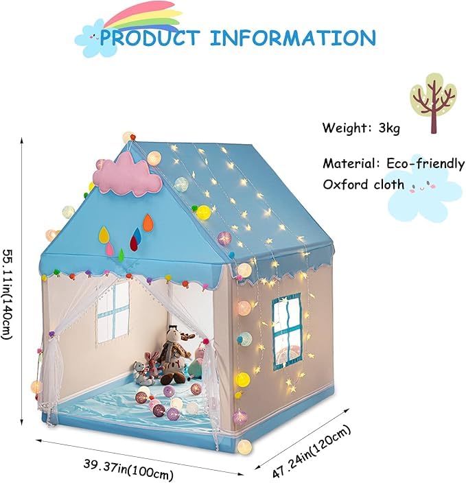 - 🧒 بيت لعب سحري للأطفال: اصنع عالمًا صغيرًا خاصًا لطفلك مع بيت الخيمة الرائع هذا - مثالي للقراءة أو اللعب أو الحلم بمغامرات كبيرة.