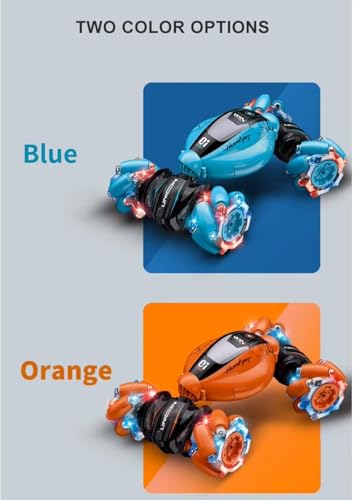 KIDSZONE - سيارة بهلوانية تعمل بجهاز تحكم عن بعد رباعية الدفع بتردد 2.4GHz وانجراف دوار 360° ومستشعر إيماءات ومصابيح ليد وقاذف رذاذ وموسيقى، قابلة لإعادة الشحن على الطرق الوعرة للأطفال والكبار من كيدززون، أزرق