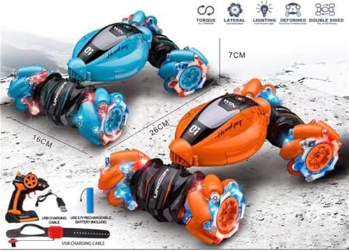 - حركة بهلوانية دوارة 360° - تؤدي السيارة تقلبات رائعة ودوران وقيادة على الوجهين من أجل متعة لا نهاية لها. التحكم في مستشعر الإيماءات - يتيح التعرف المتقدم على إيماءات اليد تحكمًا بديهيًا في الحركة. جهاز تحكم عن بعد بتردد 2.4GHz - إشارة قوية مضادة للتداخل للتعامل السلس والاستجابة. أداء عالي السرعة للطرق الوعرة - تأتي السيارة بنظام دفع رباعي لحركة قوية على مختلف التضاريس. وضع القيادة على الجهتين - تنقلب وتستمر في السير حتى بعد التدحرج.