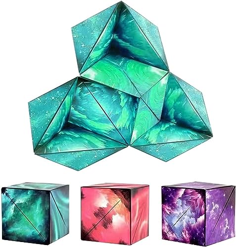 KIDSZONE - صندوق تغيير الشكل من كيدززون - مكعب فيدجيت حائز على جوائز، حاصل على براءة اختراع مع 36 مغناطيس أرضي نادر - يتحول إلى أكثر من 72 شكل، هدية للأولاد والبنات (أخضر)