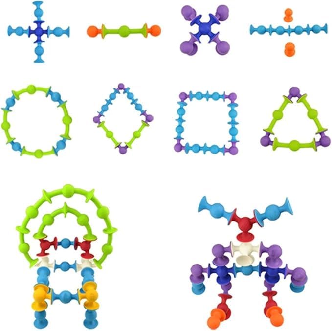 - 🧩 إمكانيات لعب لا حصر لها: مكعبات للعب مصممة بقواعد لاصقة تُثبّت بقوة على النوافذ والطاولات والأرضيات وأحواض الاستحمام، كما أنها مثالية للعب الإبداعي في أي مكان.