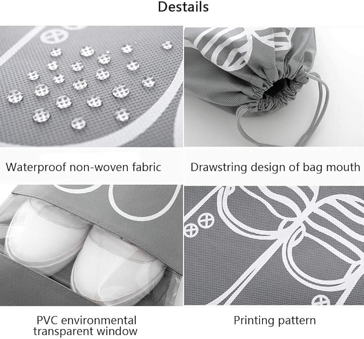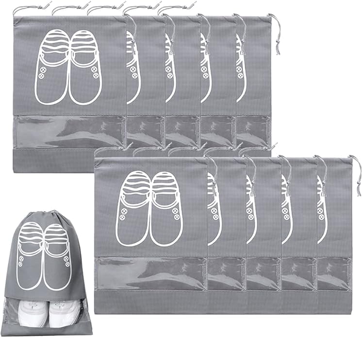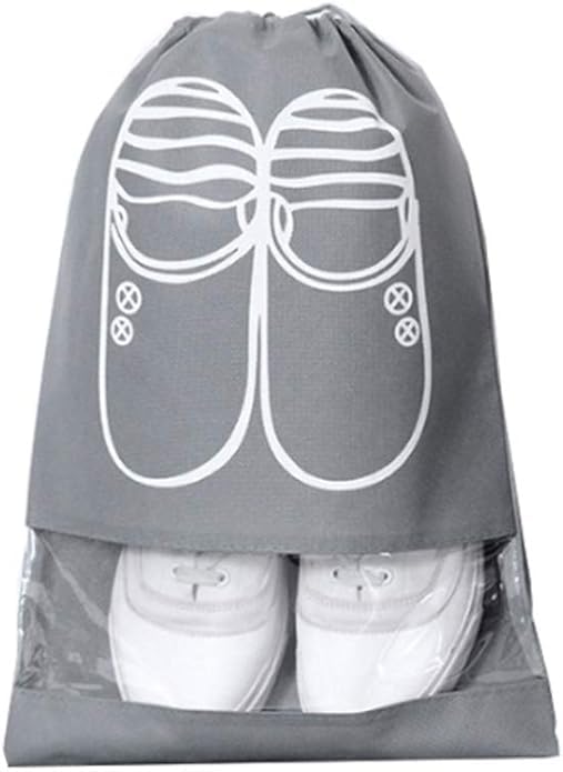 KIDSZONE - كيس أحذية للسفر مع نافذة شفافة برباط سحب مقاوم للغبار وغير منسوج للرجال والنساء للاستخدام اليومي والسفر، مقاس كبير من كيدزون (رمادي، 10 قطع)