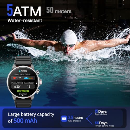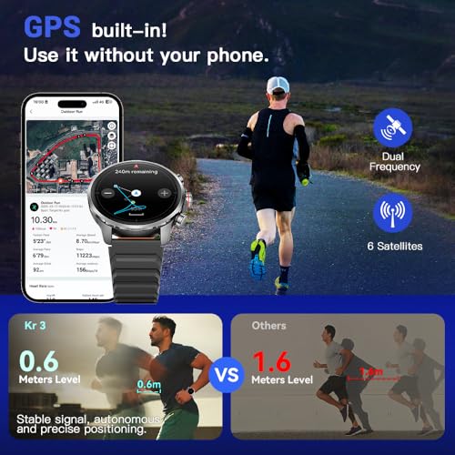 Kieslect - ساعة ذكية Kr3 للجنسين 4.7 سم وشاشة اموليد عالية الدقة "HD 3 وبنظام تحديد المواقع GPS تدعم الاتصال الرسائل بالبلوتوث و178 نمط رياضي لتتبع الصحة واللياقة والنوم ومقاومة للماء حتى 5ATM من كيسليكت، أسود
