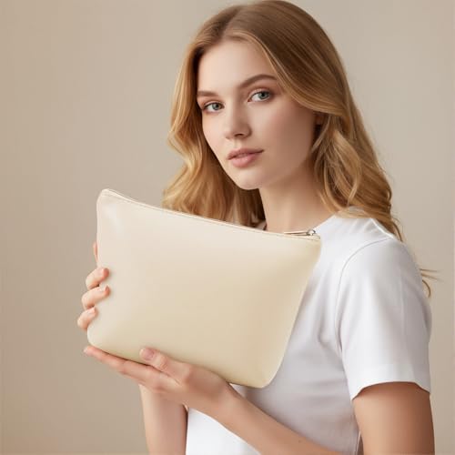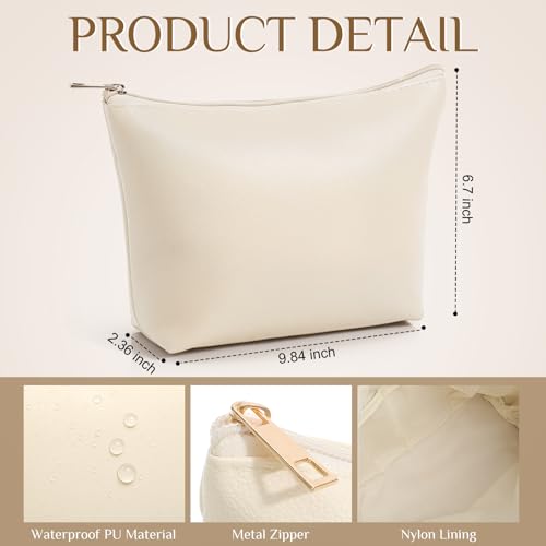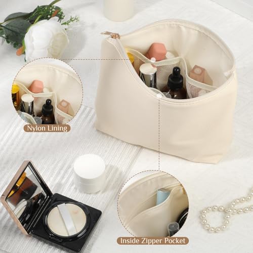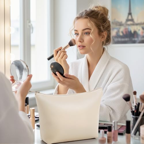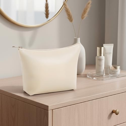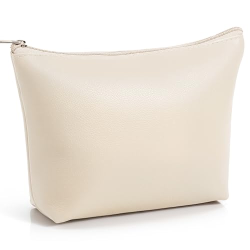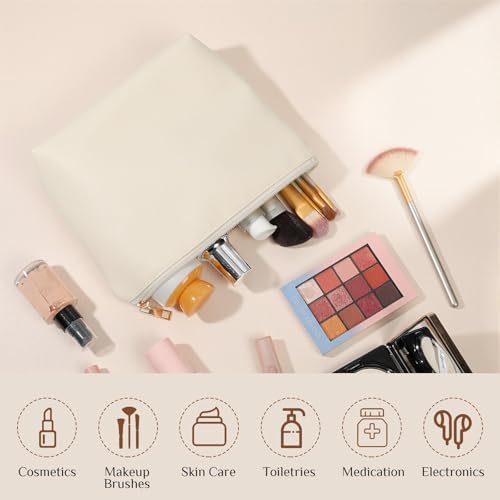 Kigeli - شنطة مكياج من الجلد الصناعي للنساء، شنطة مستحضرات تجميل صغيرة من جلد صناعي مقاوم للماء، منظم أدوات نظافة بسوستة للسفر، هدية لوصيفات العروس والصديقات للتخرج والكريسماس والحفلات من كيجيلي، أبيض
