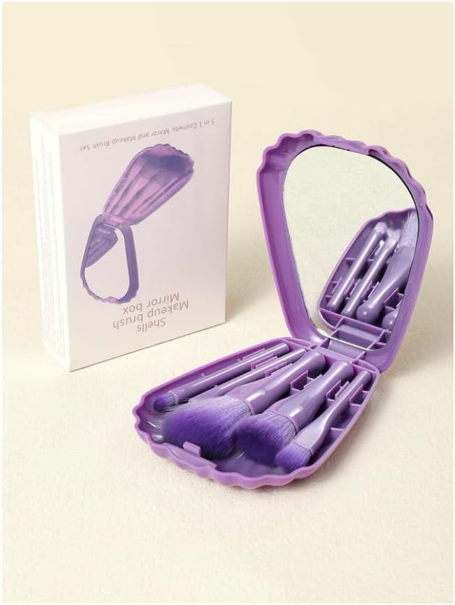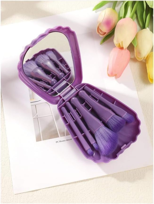 Generic - مجموعة فرش مكياج على شكل صدف من - فرش مكياج احترافية للسفر مع مراة | شنطة فرش مكياج محمولة للنساء | فرش للوجه والعينين واحمر الخدود وملمع الشفاه (ارجواني)