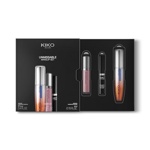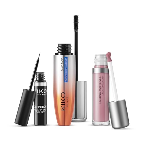 Kiko Milano - مكياج انميسابل ميلانو، مجموعة ماسكارا وقلم تحديد عيون مقاوم للماء وأحمر شفاه سائل مطفي من كيكو