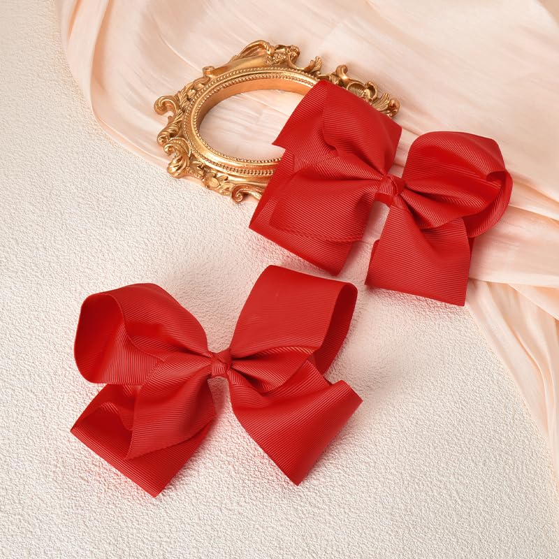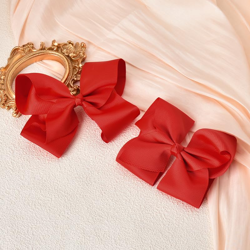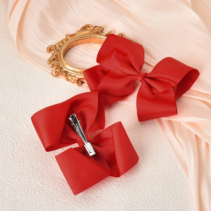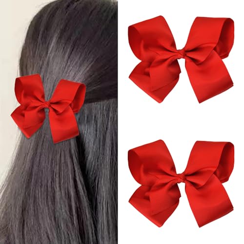 Kilener - فيونكة شعر للبنات، شريط من الحرير المضلع باللون الأحمر، مشابك شعر على شكل تمساح للأطفال، اكسسوارات شعر للبنات والنساء، مشابك شعر كبيرة على شكل فيونكة، 2 قطعة من كيلنر