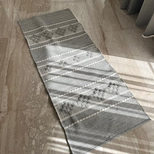 Generic - مفرش قطني من كليم - نسيج رمادي ناعم، 65 × 165 سم، سجادة كليم رمادية هادئة وأنيقة مصممة لإضفاء النعومة والملمس الرقيق على أي غرفة
