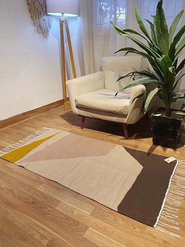 Kilim Studio - سجادة كليم من كليم ستوديو، مقاس 1.20 م × 1.80 م، باللون البني الغامق والبني الرمادي والأصفر المسطردة