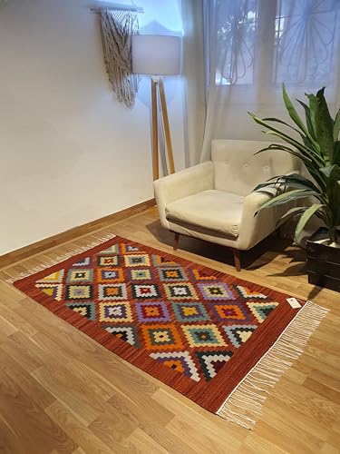 Kilim Studio - كليم متعدد الألوان بقاعدة بلون أحمر غامق من كليم ستوديو، 1.2 × 1.8 م