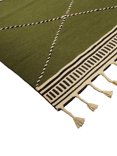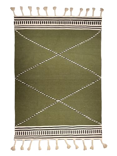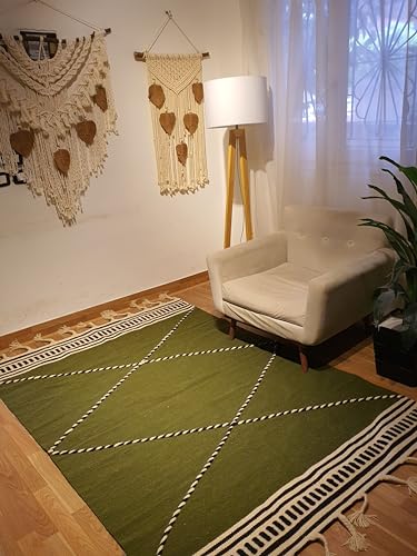 Kilim Studio - سجادة صوف من كليم ستوديو، مقاس 2 × 3 متر، لون أخضر غامق/أزرق غامق/اوف وايت