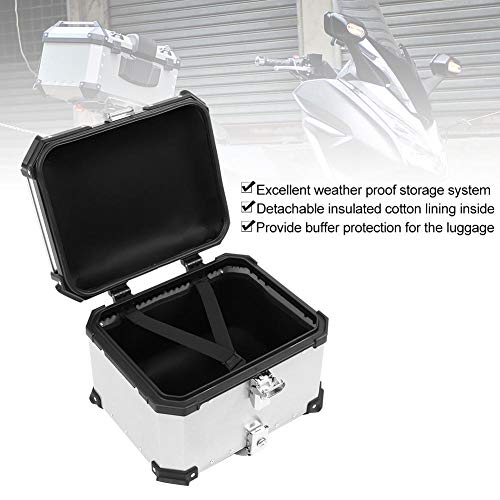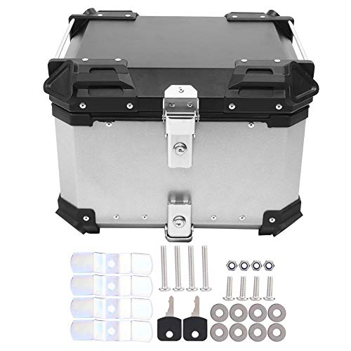 KIMISS - صندوق أمتعة يونيفرسال بتصميم علوي من الألومنيوم للموتوسيكلات سعة 45 لتر من كيه ميس، (لون فضي)