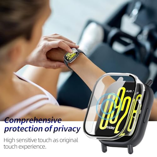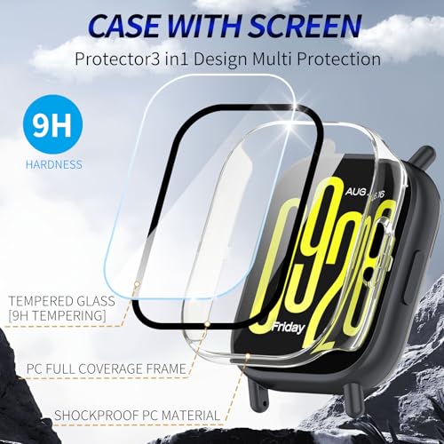 Kimiyaki - جراب حماية لشاشة ريدمي ووتش 5 اكتيف [تغطية كاملة] من كيمياكي، ملحقات حماية شاملة من البولي كربونات الصلب لساعة ريدمي ووتش 5 اكتيف المدمجة من الزجاج المقسى