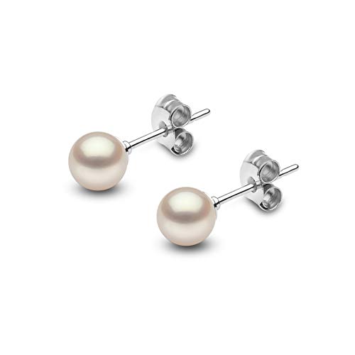 Kimura Pearls - اقراط اذن دائرية من اللؤلؤ اكويا من كيمورا بيرلز (9 قيراط، 5-5.5 ملم، ابيض ذهبي)
