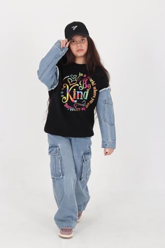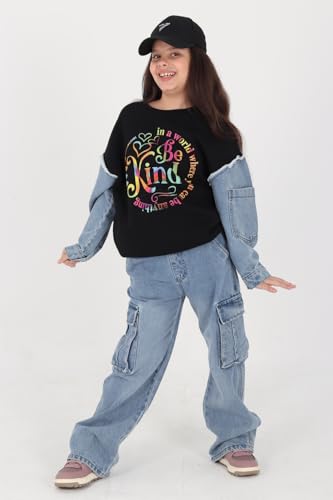 Choice N.C - طقم جينز KIND بطباعة شبابية عصرية – تصميم عملي بجودة عالية – مناسب للخروجات الكاجوال والأنشطة اليومية code 678 (اسود, 16 years)