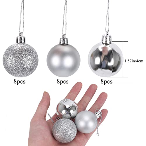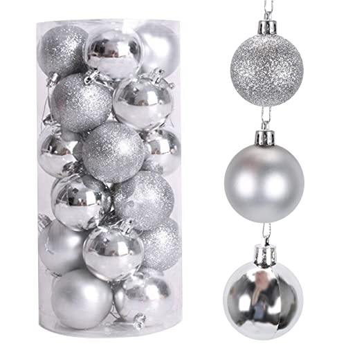 KINDPMA - زينة الكريسماس من كيندبما، 24 قطعة من الزينة الفضية لتزيين الكريسماس، 3 أنواع من كرات الكريسماس الكلاسيكية، ألعاب البنات، هدية عيد الميلاد، هدية الكريسماس، للنمو، ممتعة، للأطفال