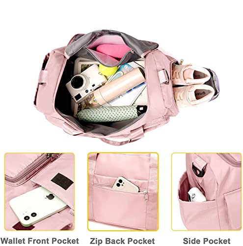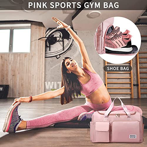 KINDRED - كندريد شنطة دفل للسفر وصالة الالعاب الرياضية، سفر محمولة قابلة للطي بسعة كبيرة، مقاومة للماء، متعددة الوظائف، احذية لصالة الرياضية والسباحة والمشي لمسافات طويلة للنساء، البوليستر، زهري .