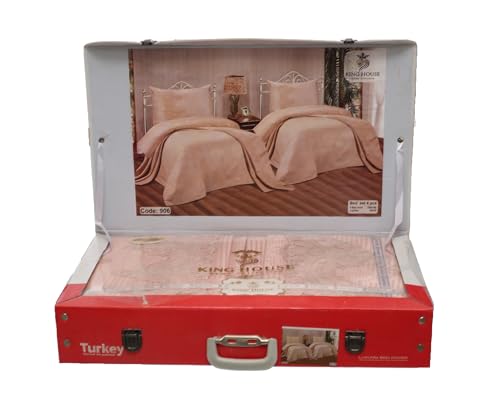 - طقم كينج هاوس، 2 كوفرته مقاس 220×240 + 2 خدادية مقاس 60×75، 4 قطع سوفت فايبر معالج ، بدي روز - 12060