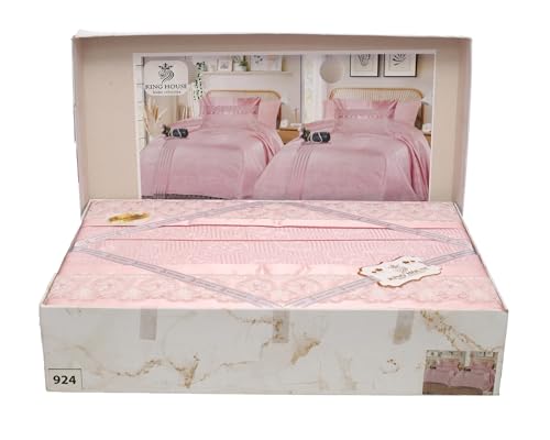 - طقم كينج هاوس، 2 كوفرته مقاس 220×240 + 2 خدادية مقاس 60×75، 4 قطع سوفت فايبر معالج ، بدي روز - 17438