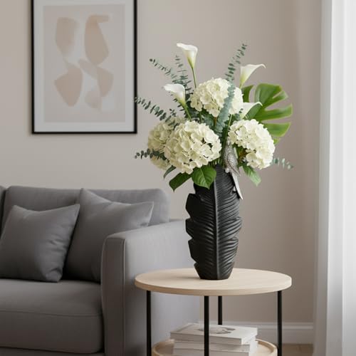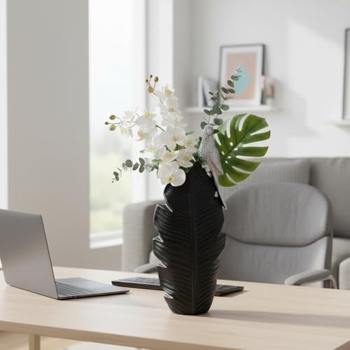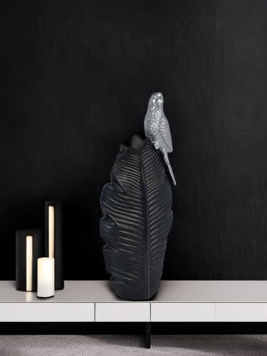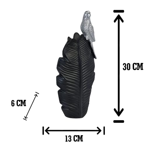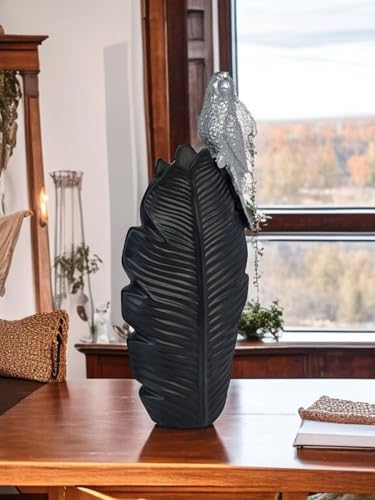 Generic - فازة (مزهرية) ديكورية بتصميم ريشة استوائية عليها عصفور - تحفة فنية حديثة للديكور الفخم - هدية فريدة للمنزل والمكتب - من البورسيلين من الكينج ستورز (أسود عصفور فضي)
