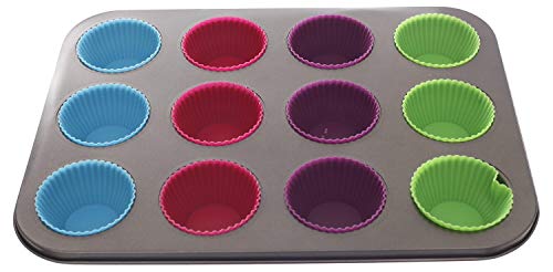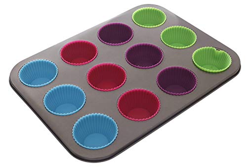 King - قالب كب كيك تفلون مزود ب 12 فتحة سيليكون من كينج - متعدد الالوان