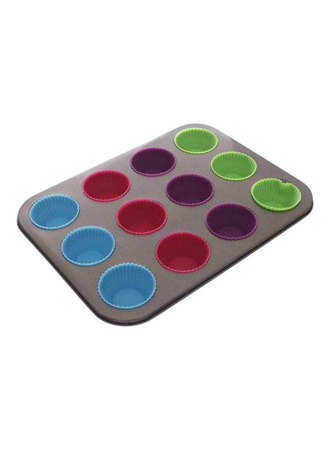 GENERIC - قالب كب كيك تفلون مع 12 فتحة من السيليكون من كينج - متعدد الالوان