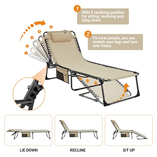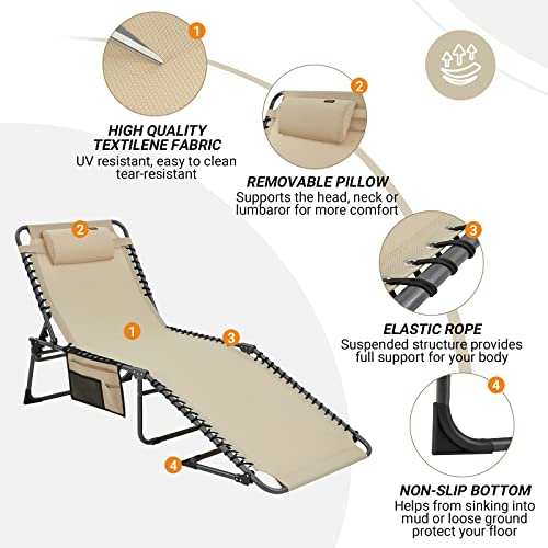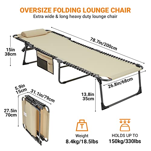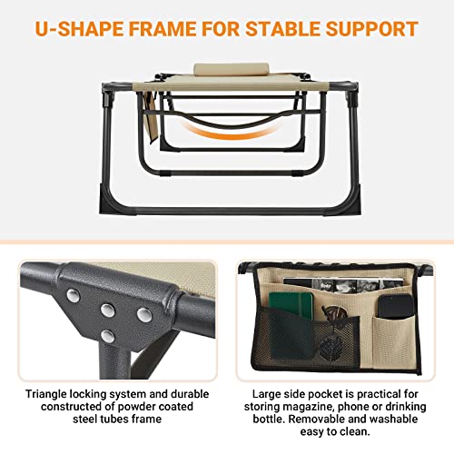 KingCamp - كينج كامب كرسي تخييم كبير الحجم، كرسي استلقاء للتشمس، كرسي للحديقة، سرير تخييم قابل للطي مع لوحة خلفية قابلة للتعديل ووسادة للحديقة والعطلات والاماكن الخارجية حتى 150