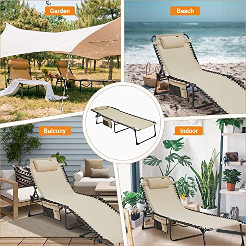 - متعدد الاستخدامات: مسند الظهر القابل للتعديل المكون من 5 مستويات لكرسي التخييم وإطار الساق القابل للطي يجعله ليس فقط كرسي استلقاء للتشمس، ولكن أيضًا كرسي قابل للطي. الوزن: 8.4 كغم. كرسي التشمس مثالي لأي حديقة أو على الشاطئ أو حمام السباحة، حيث يمكنك الاسترخاء والاستمتاع بوقت مريح.