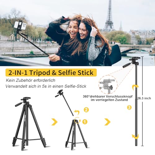 - ما تحصل عليه: 1 × حامل ثلاثي القوائم، 1 × حامل جوال، 1 × جهاز تحكم عن بعد لاسلكي، 1 × حقيبة حمل. نقدم لك إرجاع مجاني لمدة 30 يومًا، وضمان لمدة عام بالإضافة إلى خدمة عملاء موثوقة ومرضية.