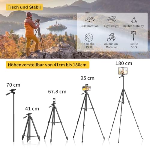 - خفيف الوزن ومتين للغاية - يمكن طي حامل ثلاثي القوائم المصنوع من الألومنيوم بسهولة إلى طول مثير للإعجاب يبلغ 16.5 انش، ويمكن أن يمتد إلى 60 انش كحد أقصى ويزن خفيف بشكل لا يصدق عند 0.59 كجم فقط. تناسب بشكل مريح أي حقيبة ظهر تقريبًا ويسهل حملها مع الاستمتاع بزيادة كبيرة في جودة الصورة مقارنة بالتسجيل المحمول.