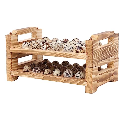 KingLin - حامل بيض الحمام والسمان الخشبي لسطح الطاولة من كينجلين، صواني تخزين بيض السمان قابلة للتكديس من طبقتين لـ 48 بيضة طازجة، ديكور ريفي للمطبخ