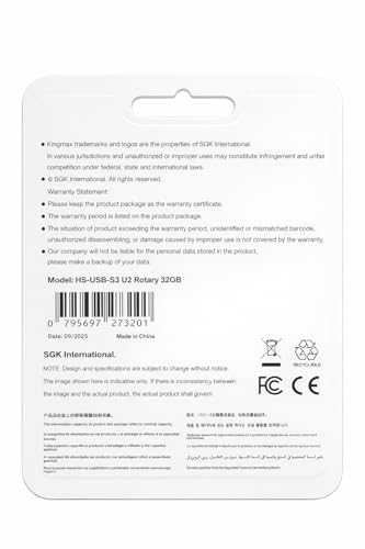 - جودة كينج ماكس الموثوقة، تم تصنيع الفلاش ميموري بواسطة كينج ماكس، وهي علامة تجارية موثوقة في حلول الذاكرة. مثالي للعمل المكتبي والتعليم والنسخ الاحتياطي للبيانات واحتياجات التخزين الشخصية.