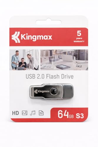 KINGMAX - كينج ماكس ذاكرة فلاش USB 2.0 64GB S3، ذاكرة محمولة لنقل البيانات بسرعة عالية، تصميم صغير ومتين، مثالي للمستندات والموسيقى والصور والفيديوهات، ضمان 5 سنوات